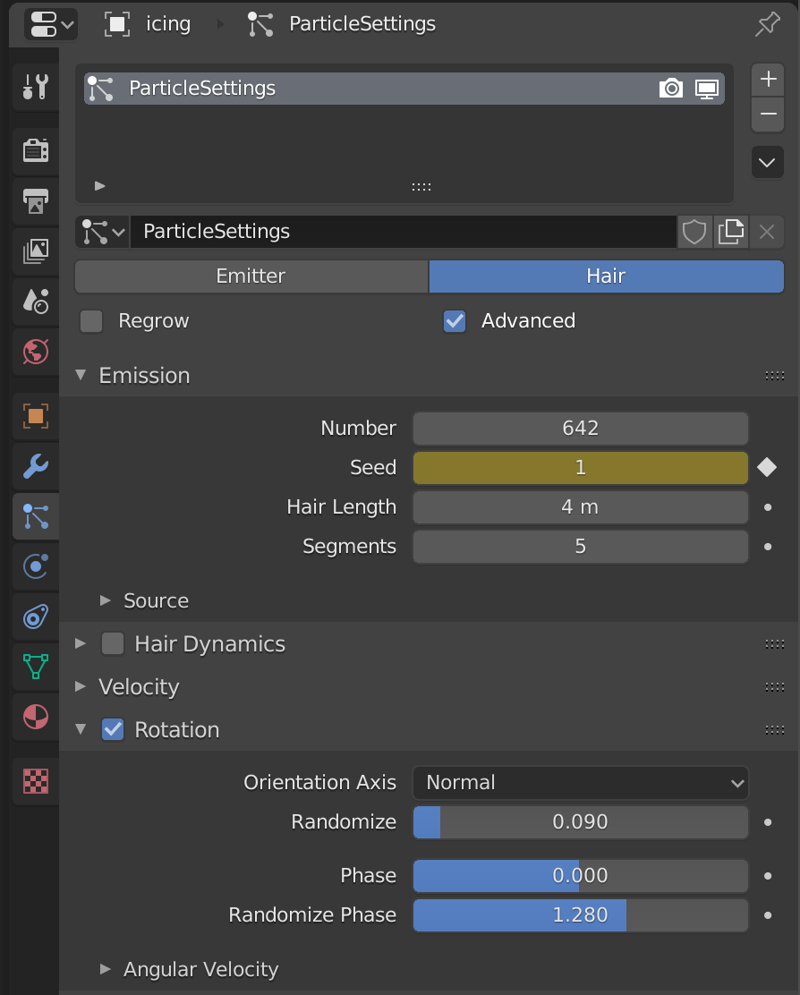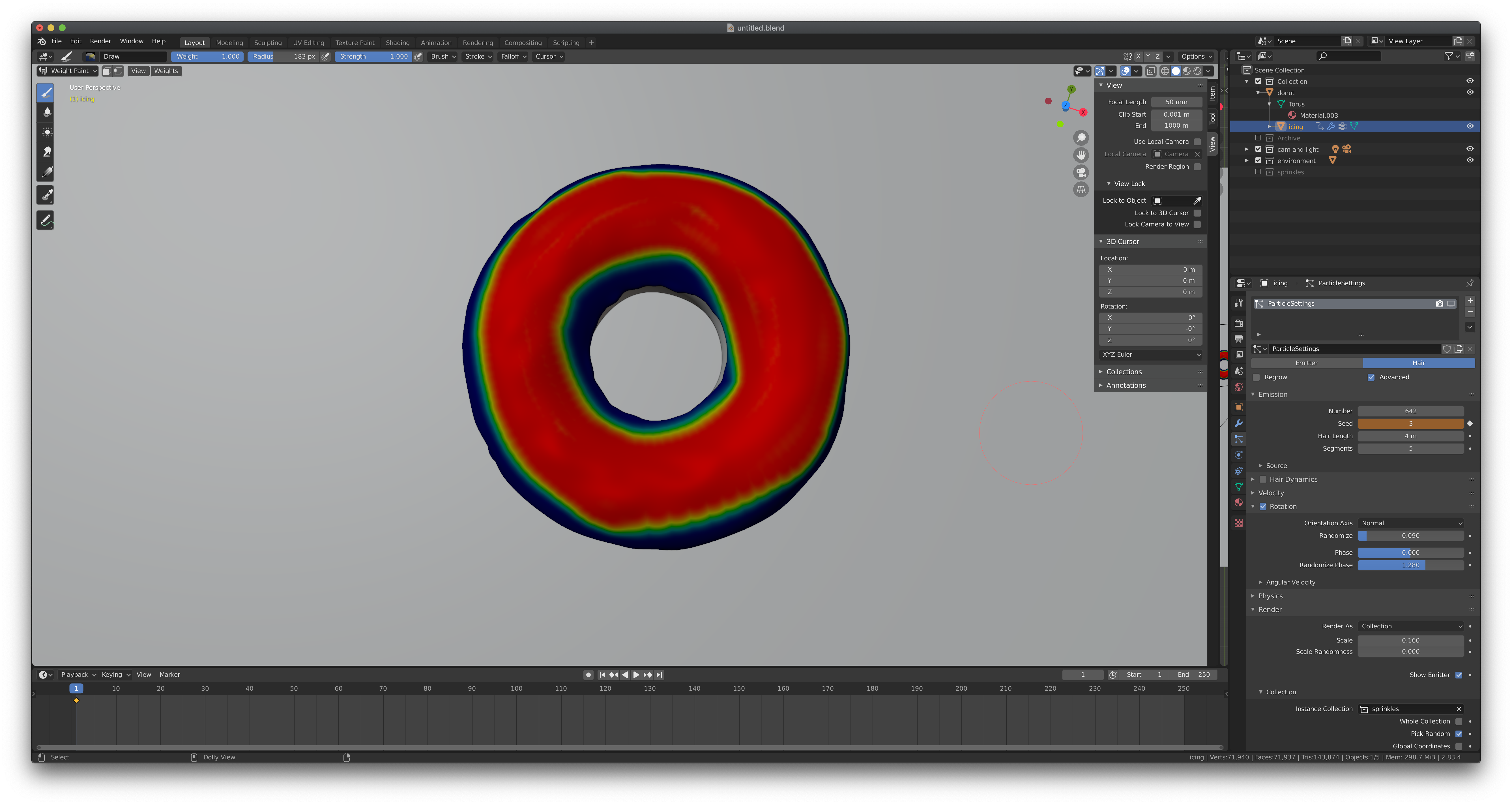 여기까지 설정하면 아이싱 오브젝트의 위아래 구분없이 여기저기 골고루 흠뻑 스프링클이 뿌려진다.