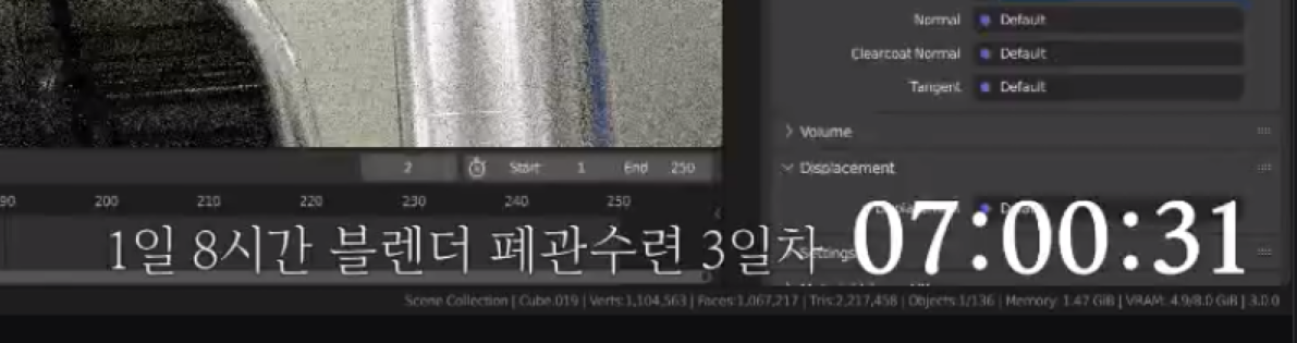 오늘은 중간에 블렌더가 한 번 튕기면서 방송도 튕겨서