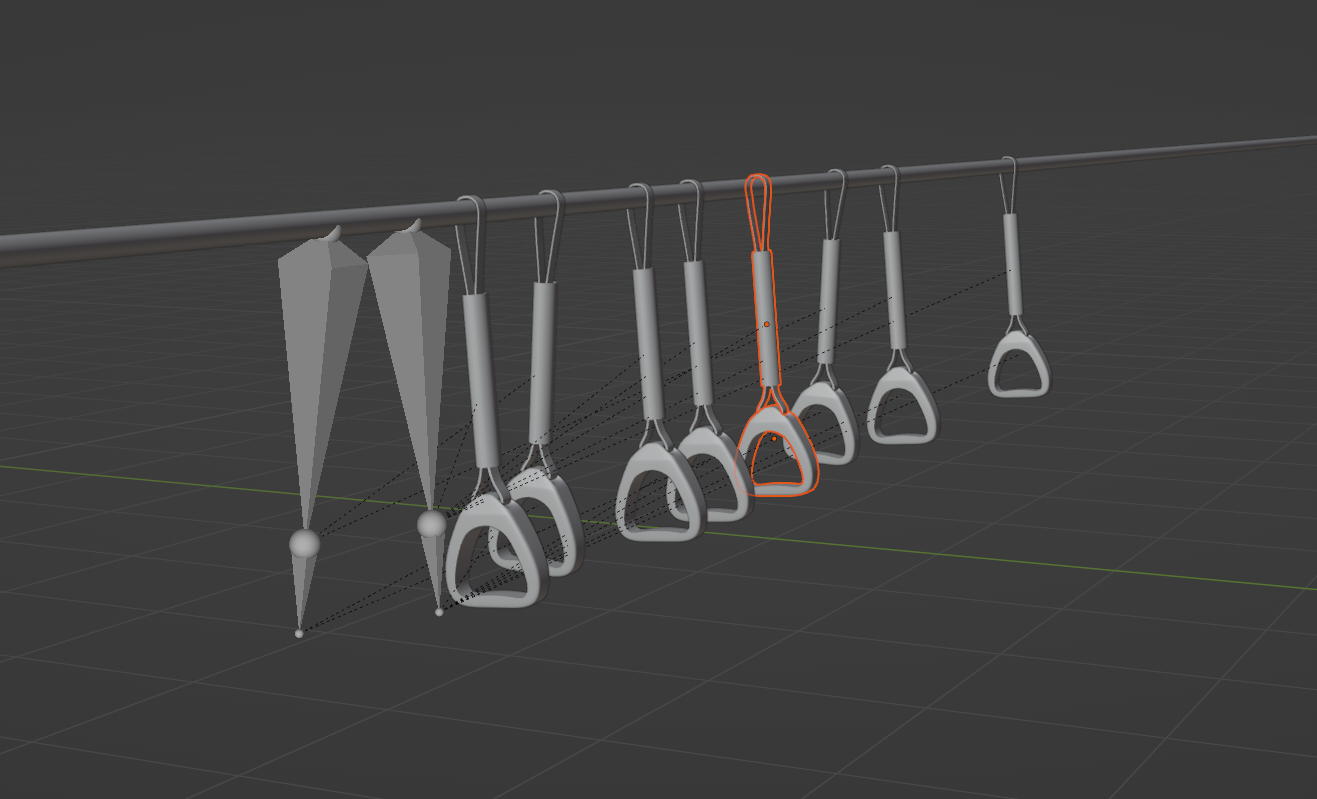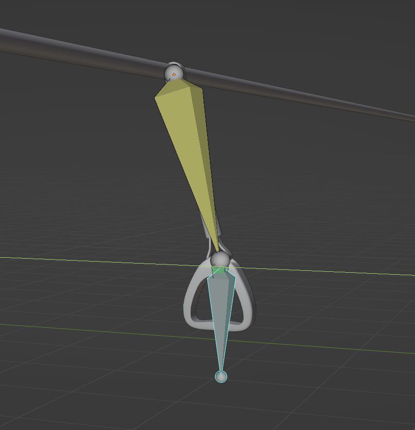 손잡이 바, 손잡이 끈, 손잡이 각각에 rigid body를 먹여서