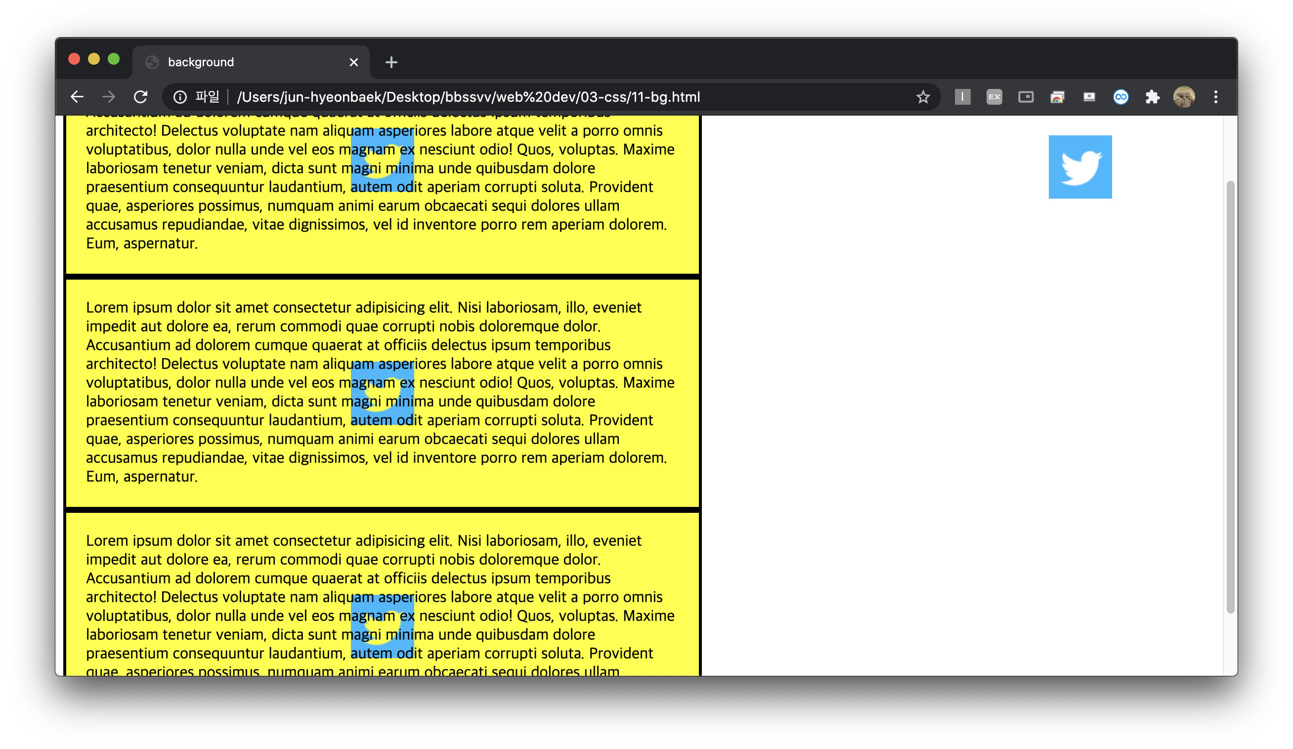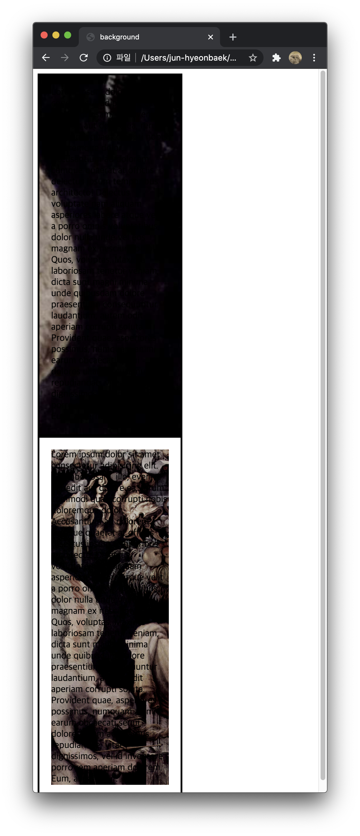 컨텐츠가 표시되는 부분에만 배경을 표시함, 배경이미지가 시작하는 부분은 border가 시작되는 부분