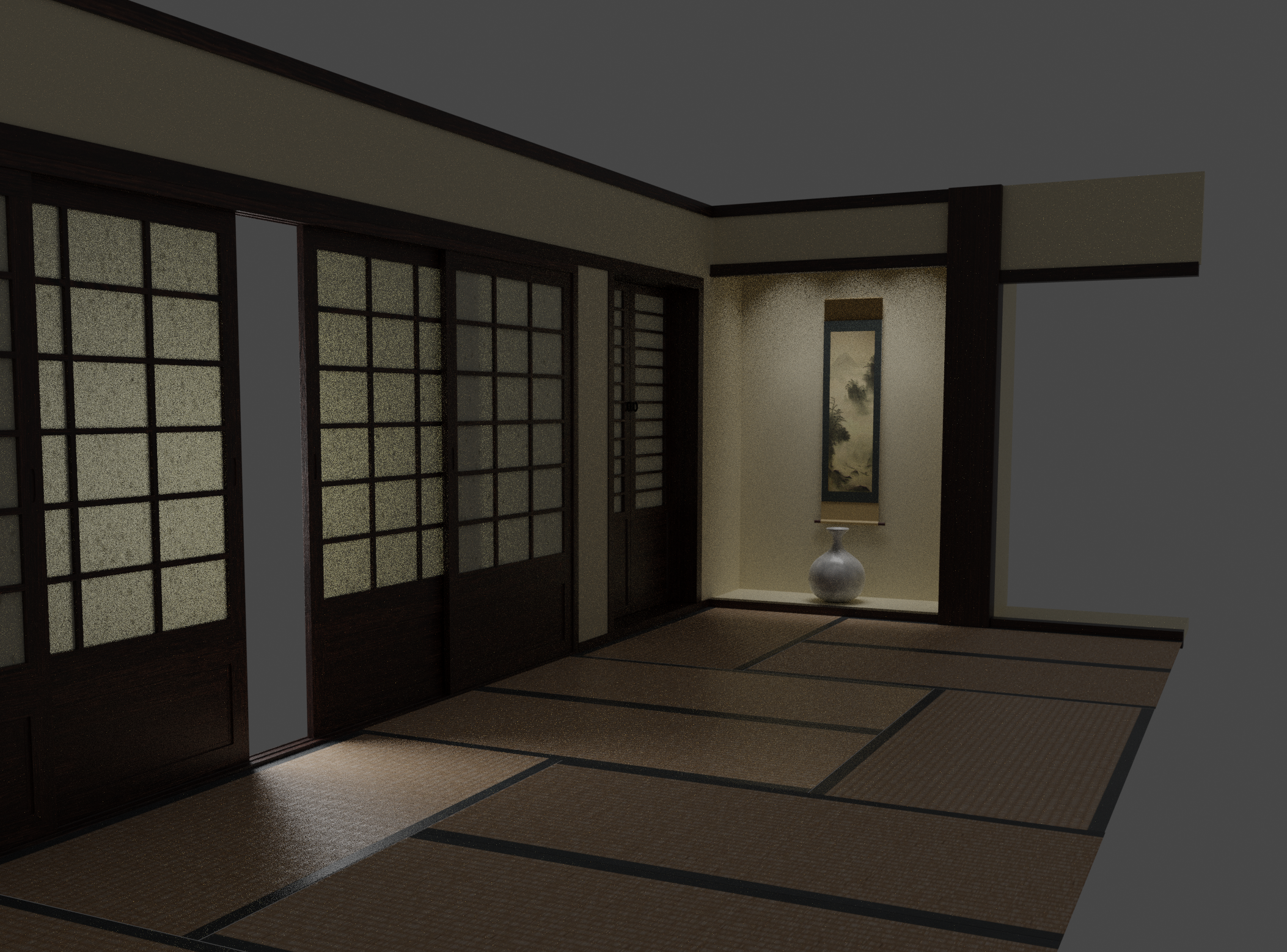 일본풍 실내 배경을 만들고 있다.