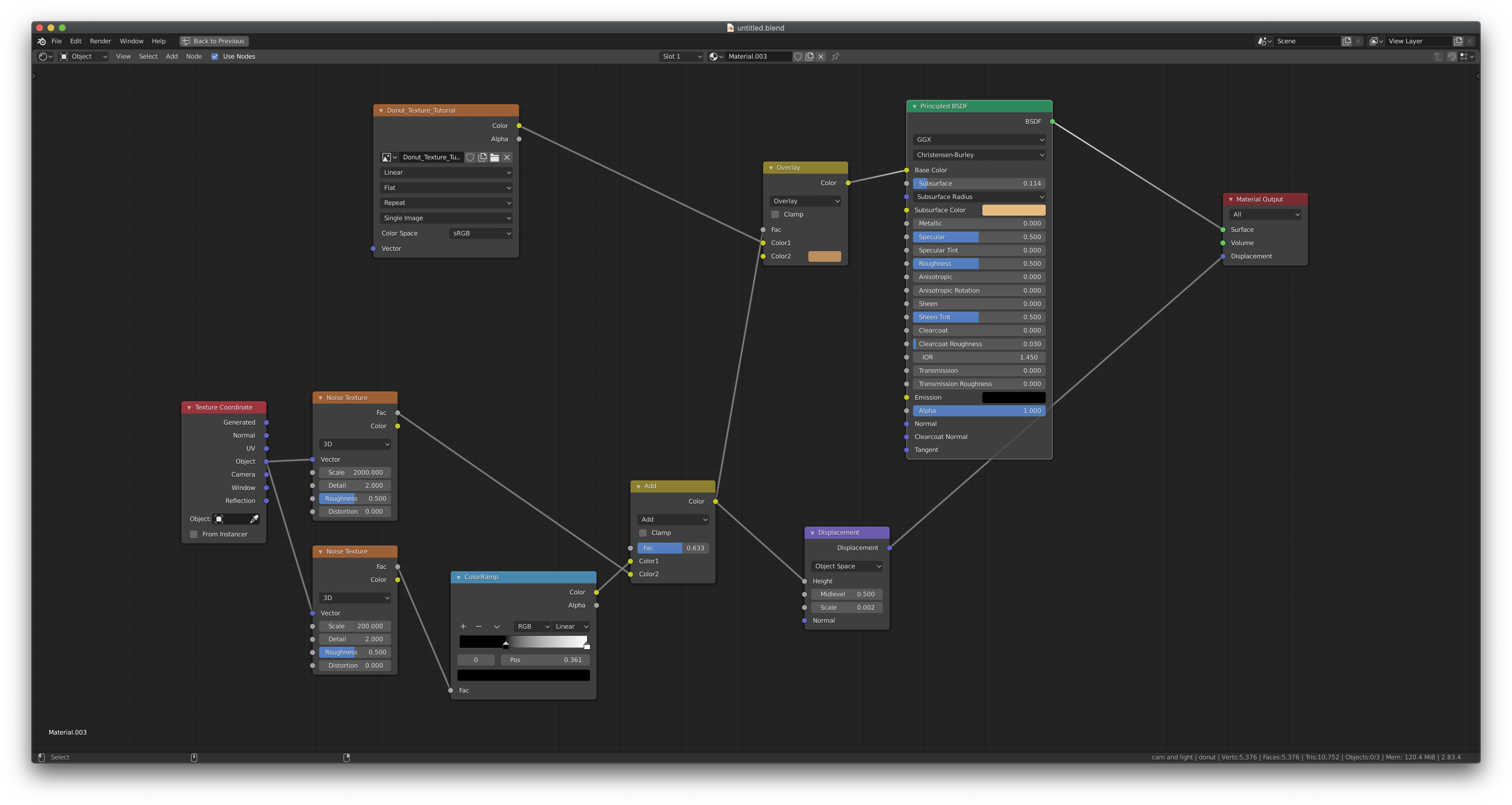 앞서 추가했던 Noise Texture 노드의 Fac을 Displacement 노드의 Height로,