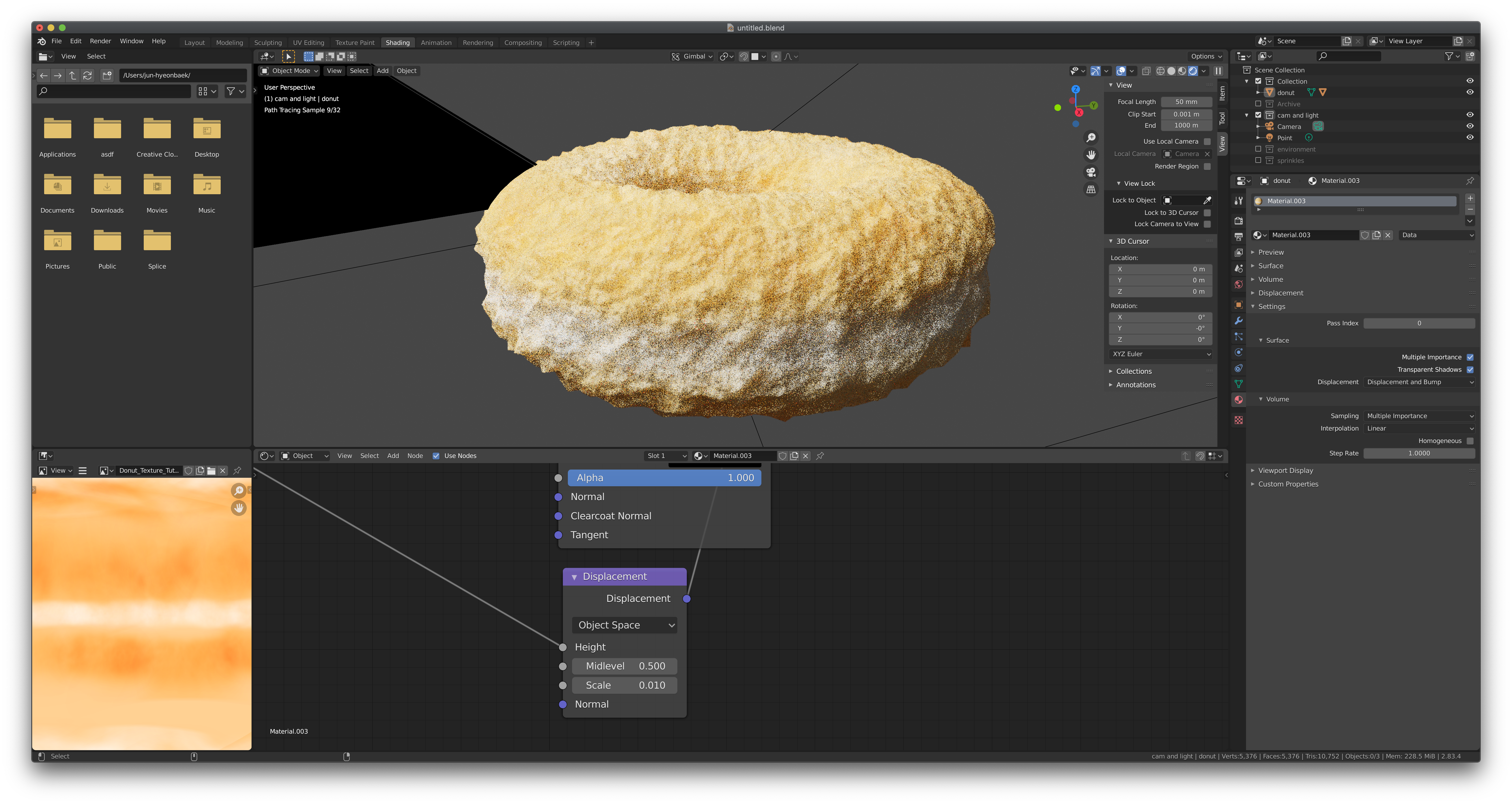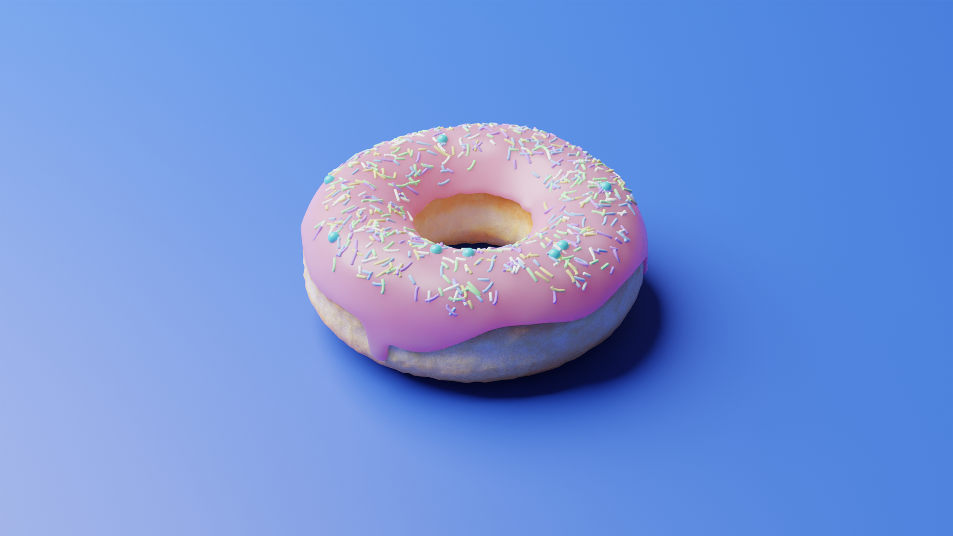 어쨌든 이렇게 울퉁불퉁까지 넣은 아이싱 없는 도넛의 렌더링 이미지는 이렇게 나왔다.