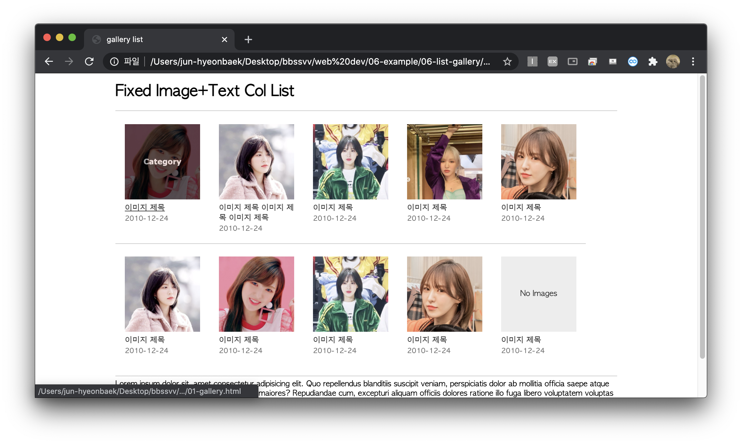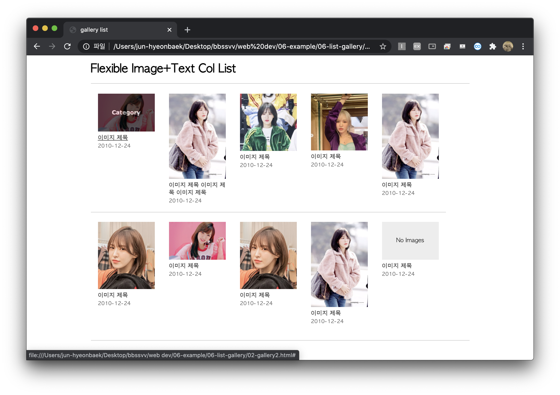 위의 갤러리 리스트랑 거의 비슷한데 이미지의 세로비율이 짧거나 길 때 쓰는 방식이다.