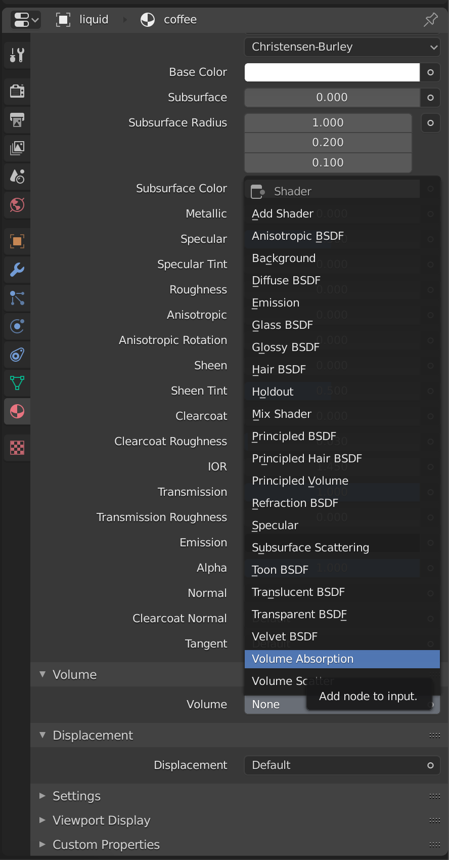 Material의 Volume 탭에서 Volume Absorption을 적용시켜줘야한다.