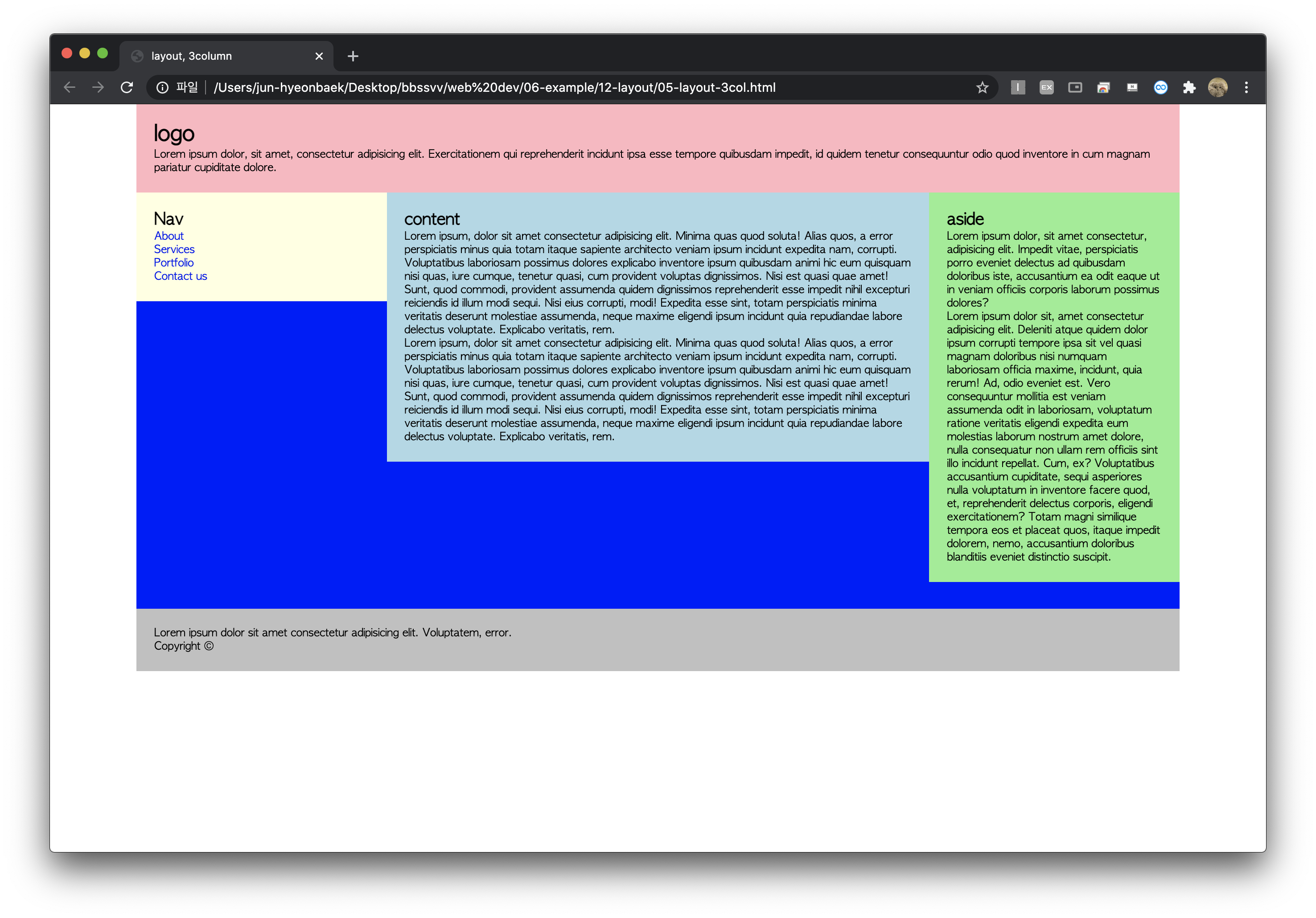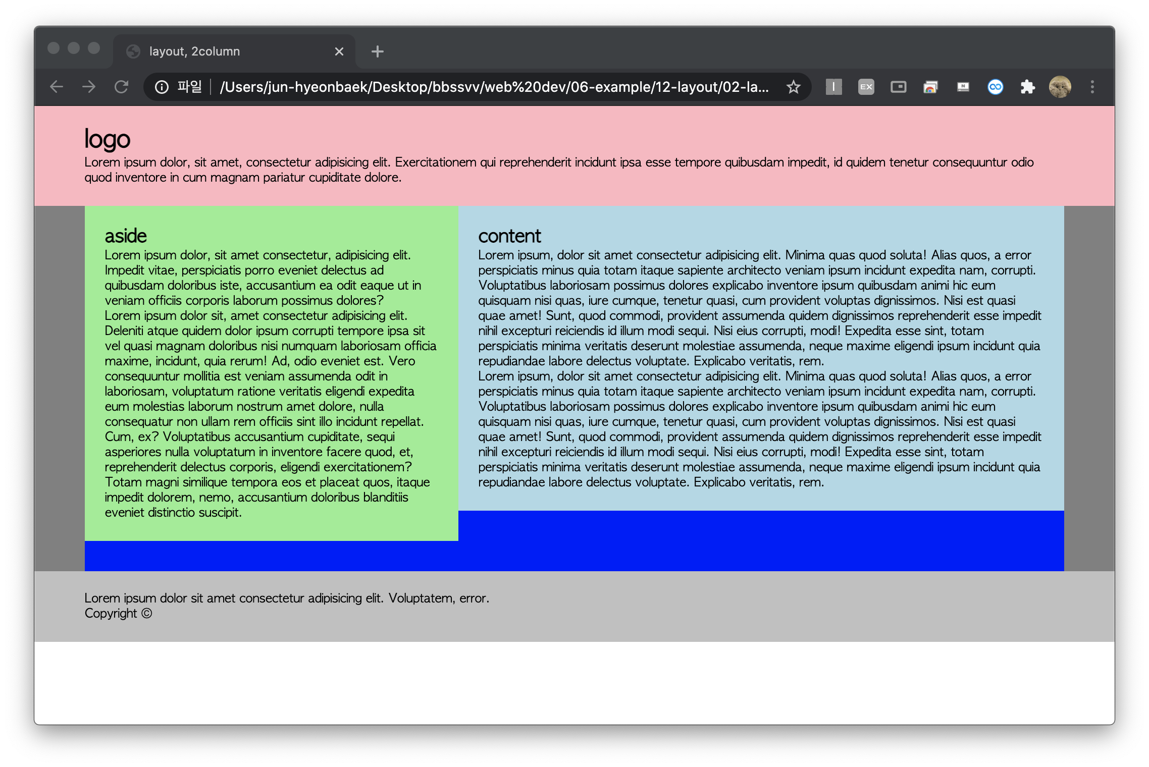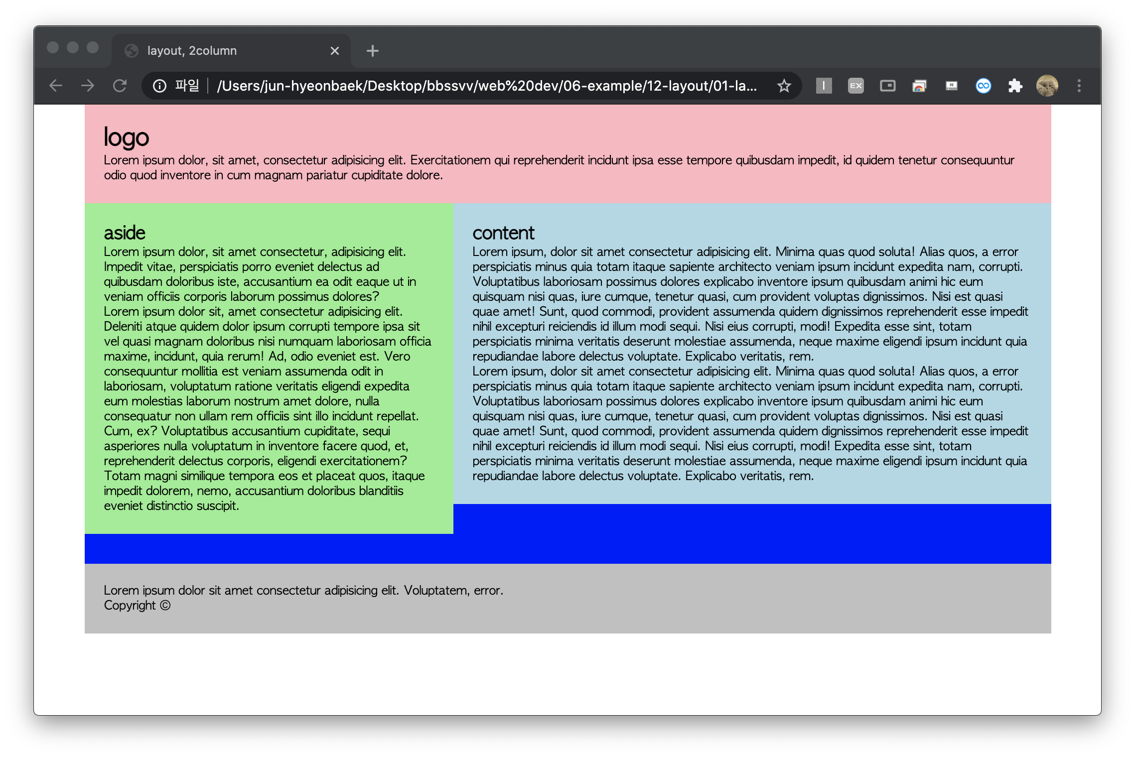 일단 예제들은 대부분 div로 구역을 나누는 방식인데
