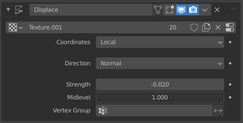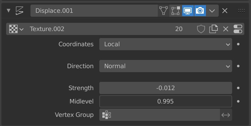 위처럼 첫 번째 displace 모디파이어를 걸어주고