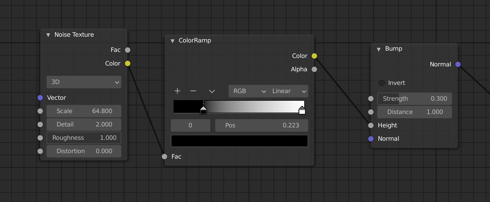 noise texture에 bump를 연결해서 노말맵으로 걸어줬다.